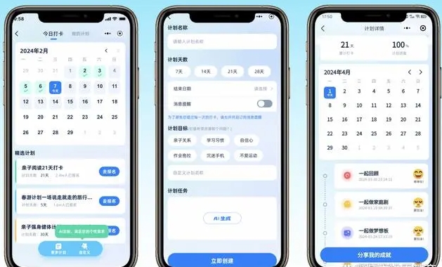 平台还提供日常打卡和效果评估工具,帮助家长制定并执行教育计划,实时跟踪孩子的成长进度。